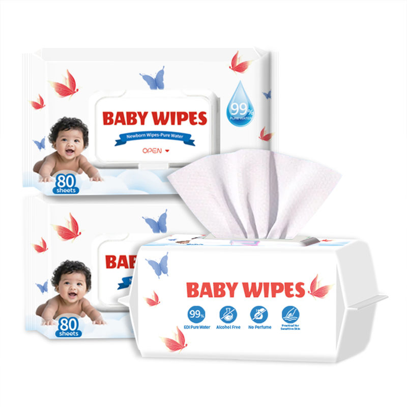 Toallitas húmedas para bebés personalizadas con 99% de agua, 80 piezas, 15*20 cm, engrosadas, con Aloe Vera